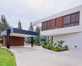 Aplicaciones de Wallpanel WPC en puerta principal, puertas y muros cochera, tanque de agua y varios sectores extras.